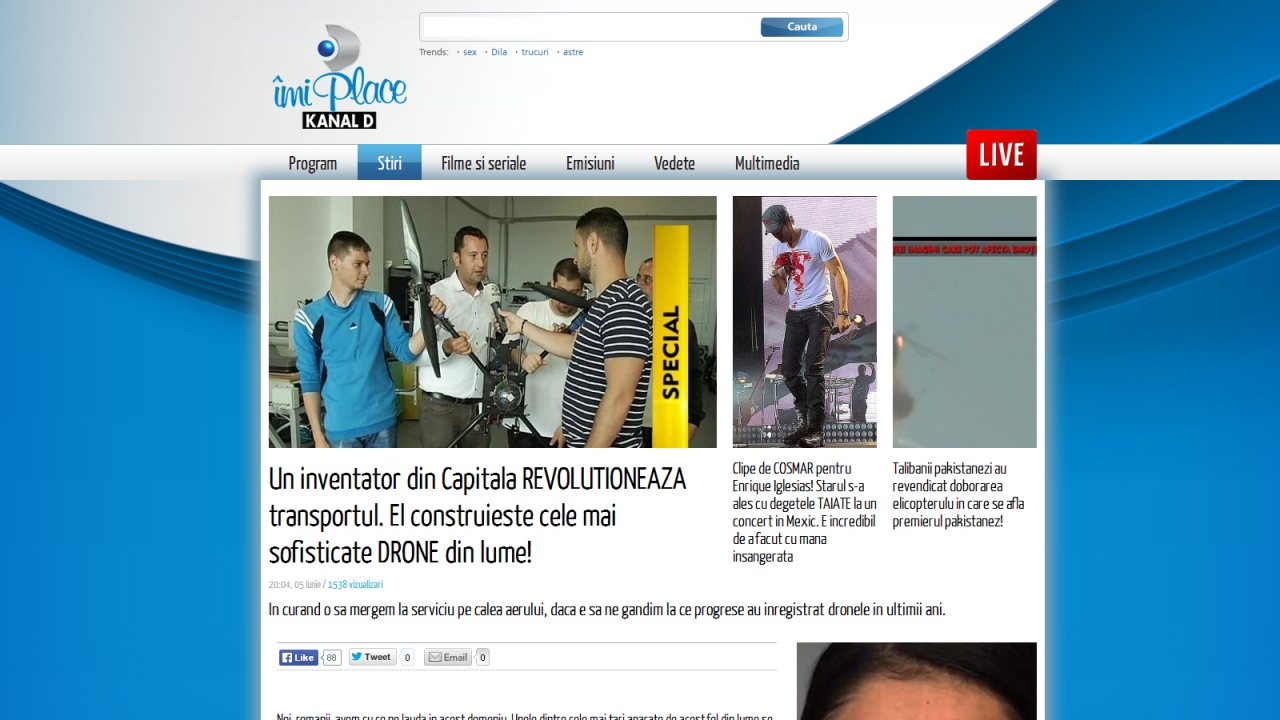 Mihai este mai toata ziua cu capul in nori. Un visator, fostul fotograf si-a transformat fantezia in realitate. De 5 ani, a pus pe picioare un bussiness de viitor, construieste cele mai sofisticate drone din lume. Nu este singur, face echipa cu alti trei colegi. Daca aceasta tehnologie poate parea multora dintre noi mult prea sofisticata., rezultatul ne lasa cu ochii pe cer la propriu.